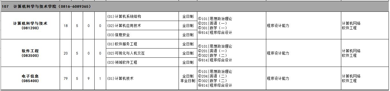2023年西南科技大学计算机科学与技术学院考研专业目录